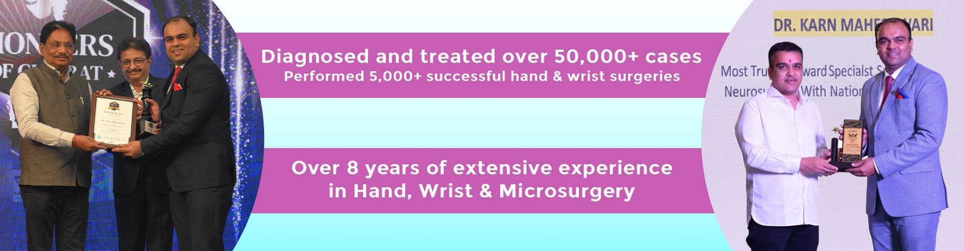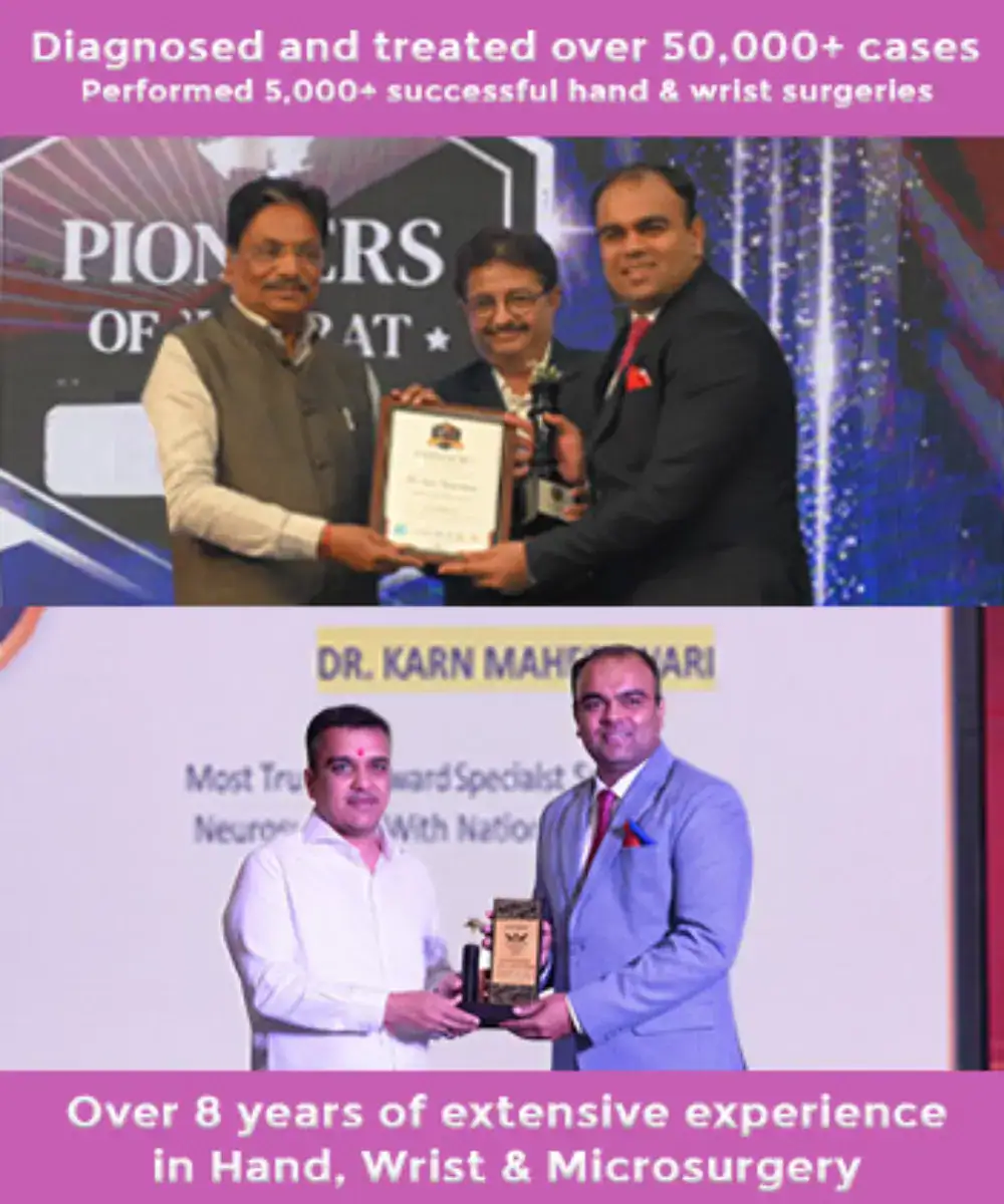 Dr. Karn Maheshwari is the only super- specialist Hand, Wrist, and Microsurgeon (FNB) in India, providing expert care to patients across Gujarat, Rajasthan, and Madhya Pradesh.